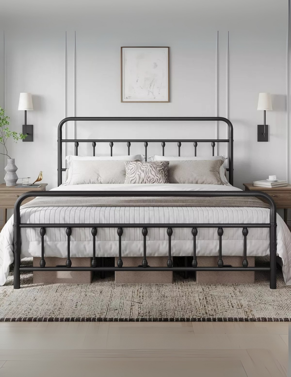 Fuerte y duradera: Base de cama completamente metálica con 12 láminas de soporte, gran capacidad de carga y recubrimiento resistente al óxido y a los arañazos. Se mantiene firme tras un montaje adecuado.