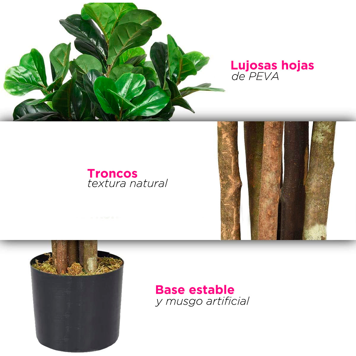 Material: Hojas de PEVA , Tronco y ramas de plástico. maceta plástica.