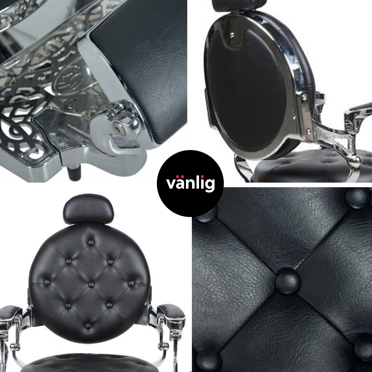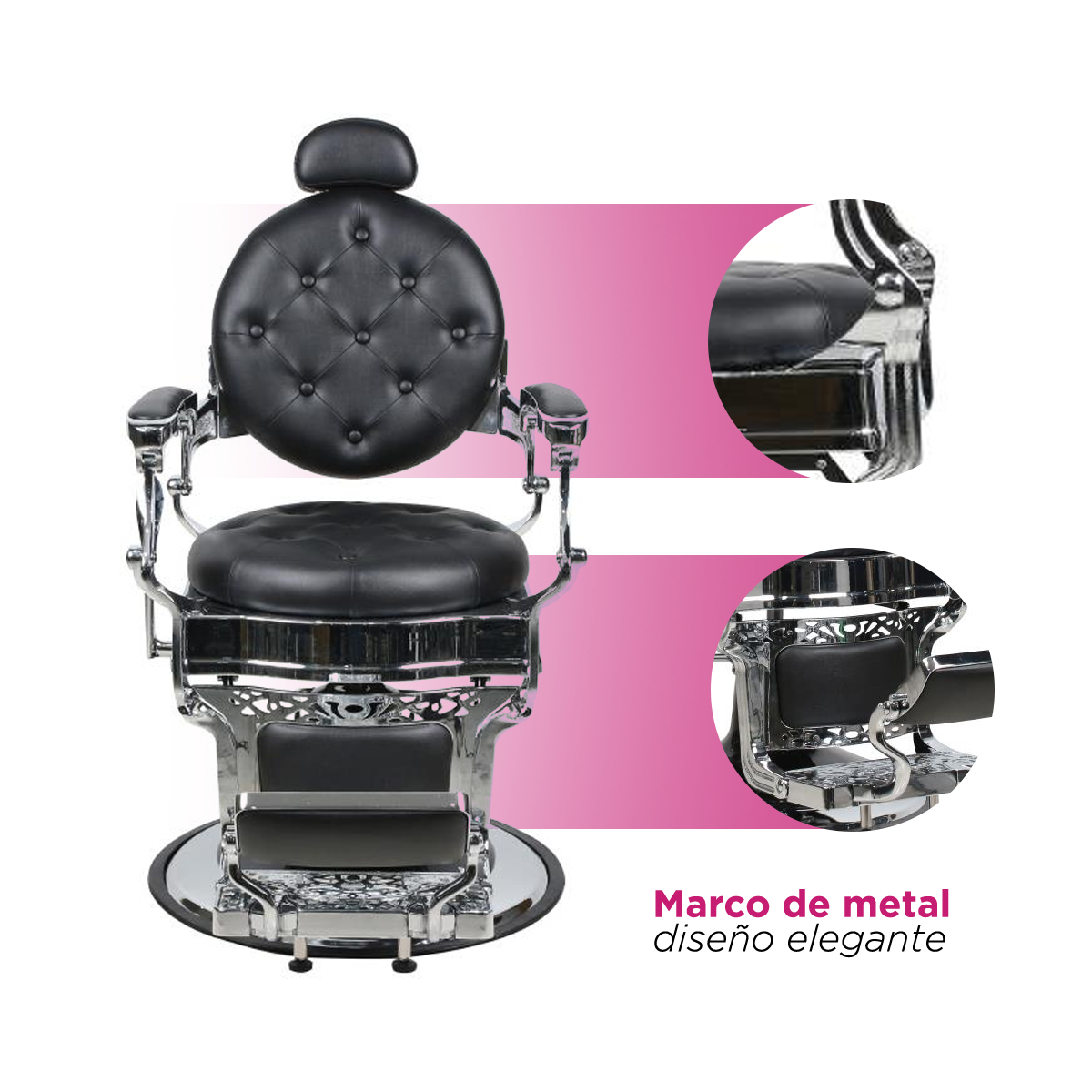 La mejor experiencia de corte de pelo: reposabrazos acolchados y reposapiés clásico de estilo abatible, reposacabezas ajustable y extraíble.