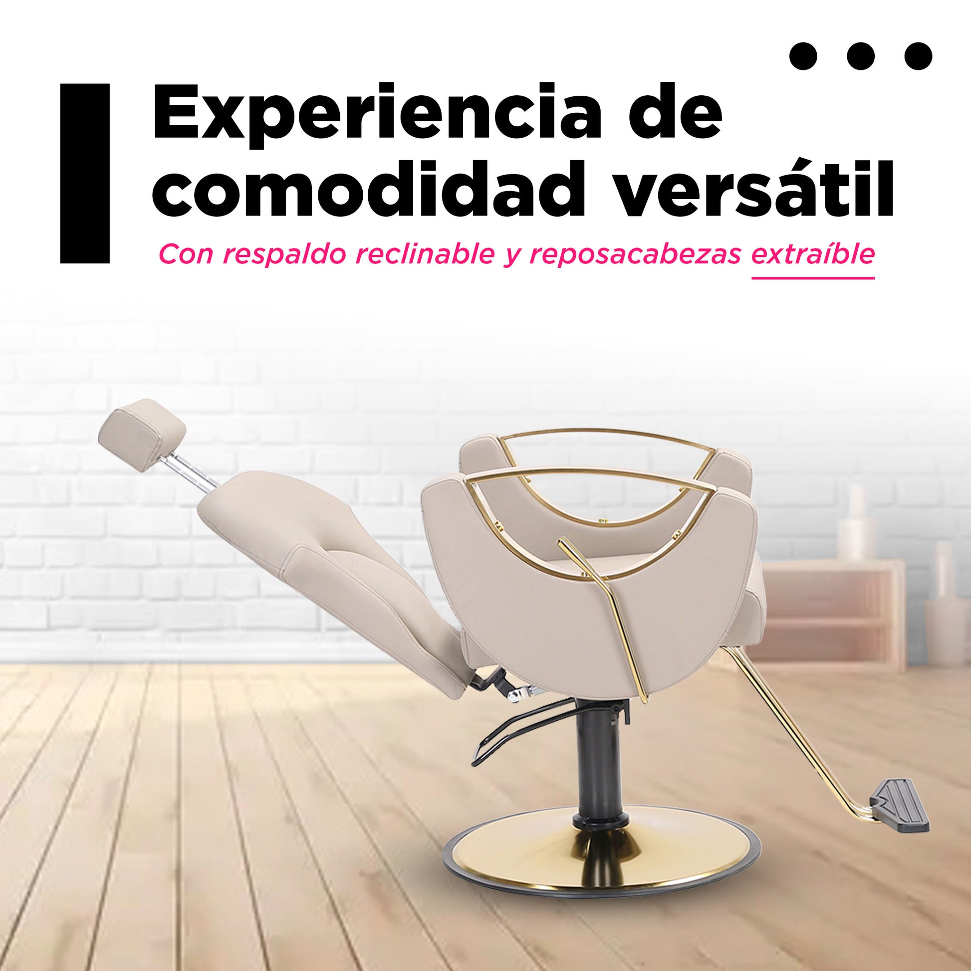 Fácil de Ajustar: nuestra silla de pelo tiene una función de rotación de 360 grados, se puede reclinar de 90° a 135° para más comodidad. La palanca reclinable de la silla está en el lado derecho cuando estás sentado. La altura del asiento se puede ajustar de 38 a 43 pulgadas, con reposacabezas ajustable que se puede adaptar a clientes de diferentes alturas.