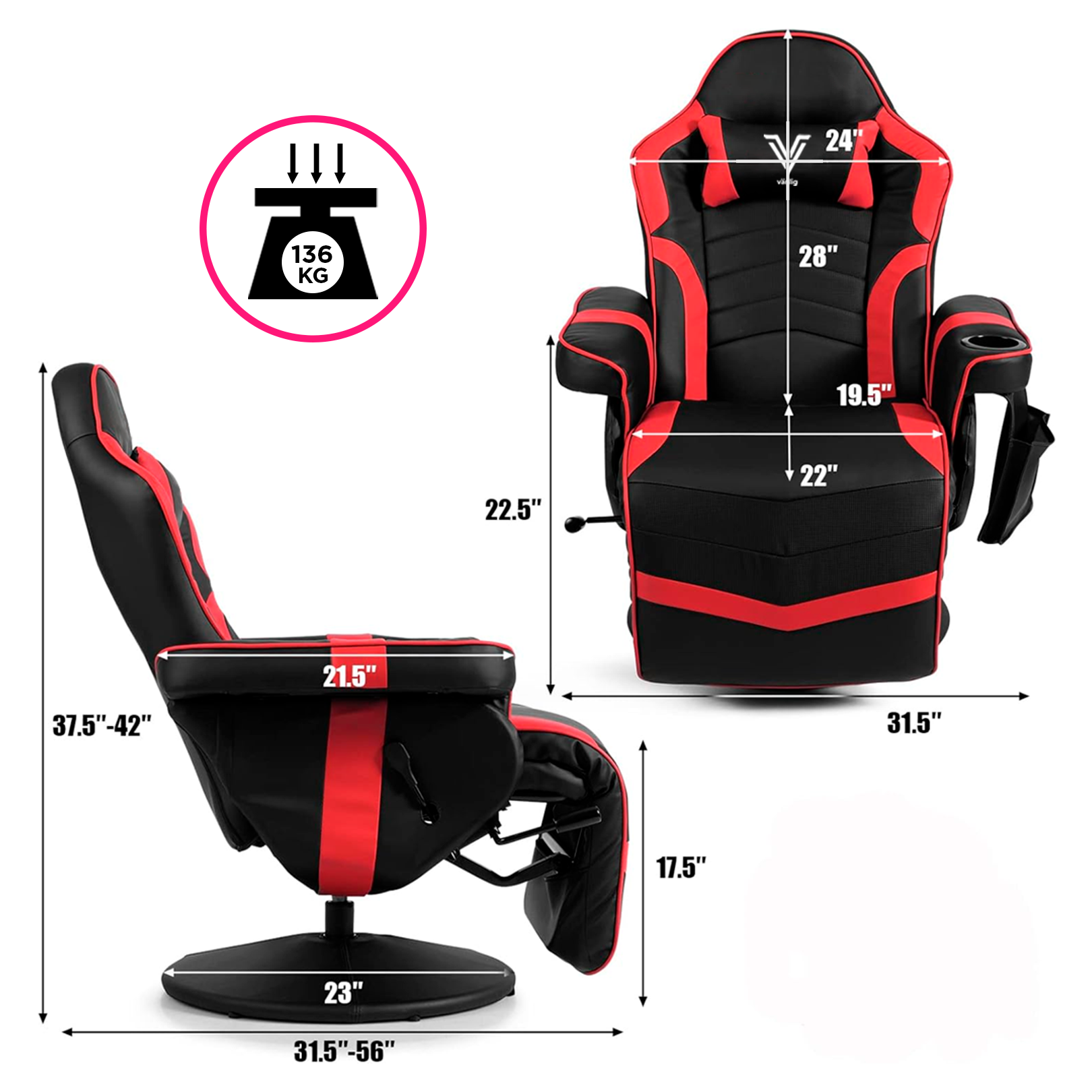 Reclinable y cómoda: El respaldo se ajusta entre 110° y 130° con tres posiciones bloqueables, permitiéndote cambiar fácilmente entre modo juego, descanso o películas. Además, cuenta con reposapiés retráctil y reposacabezas desmontable para mayor confort.