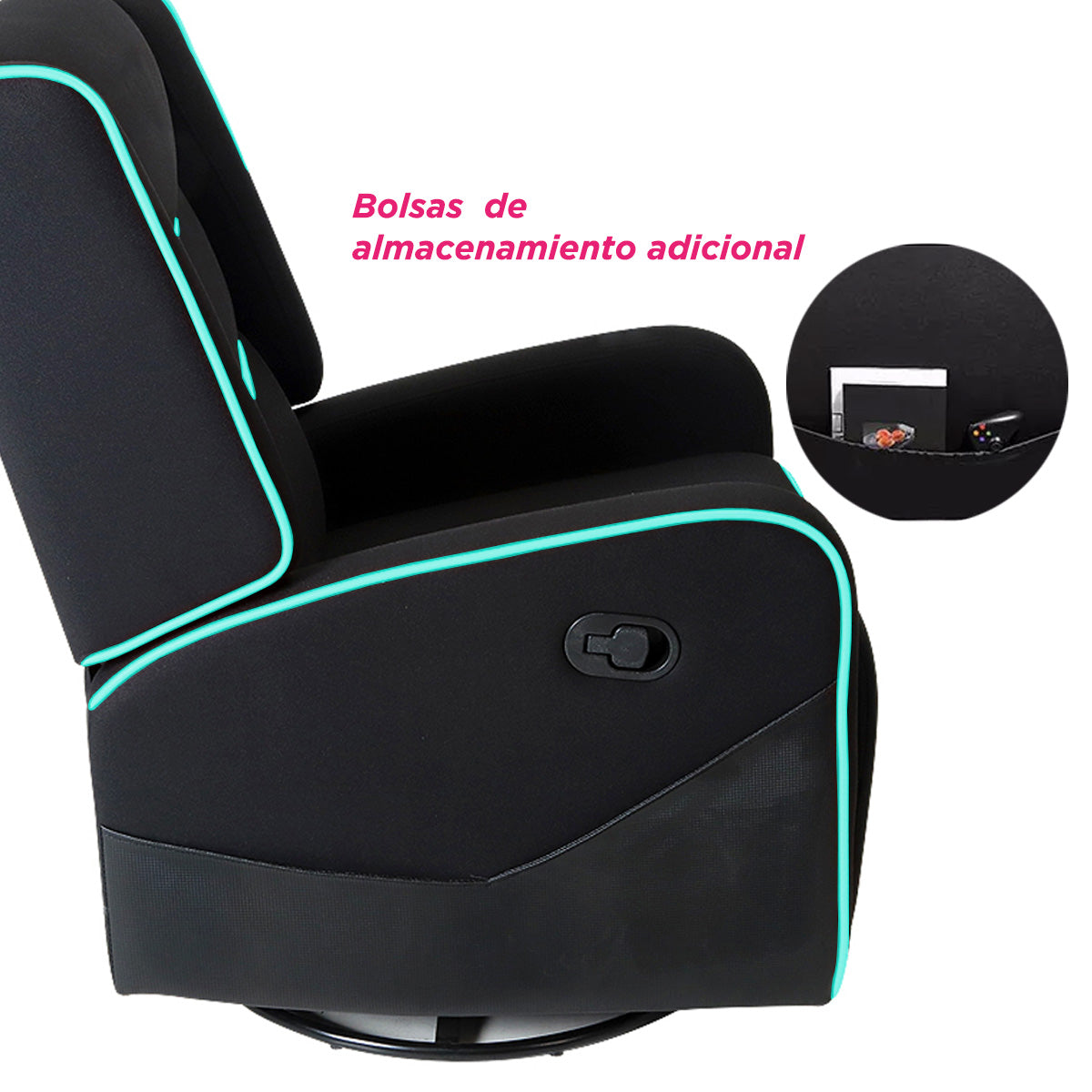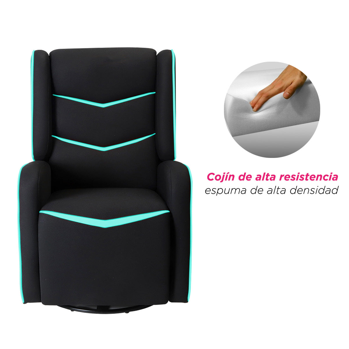 Su respaldo reclinable permite ajustar la posición para encontrar el ángulo perfecto, mientras que su sistema giratorio añade libertad de movimiento y practicidad. El relleno de espuma de alta densidad ofrece un soporte ergonómico que cuida tu postura y reduce la fatiga, incluso en sesiones prolongadas.