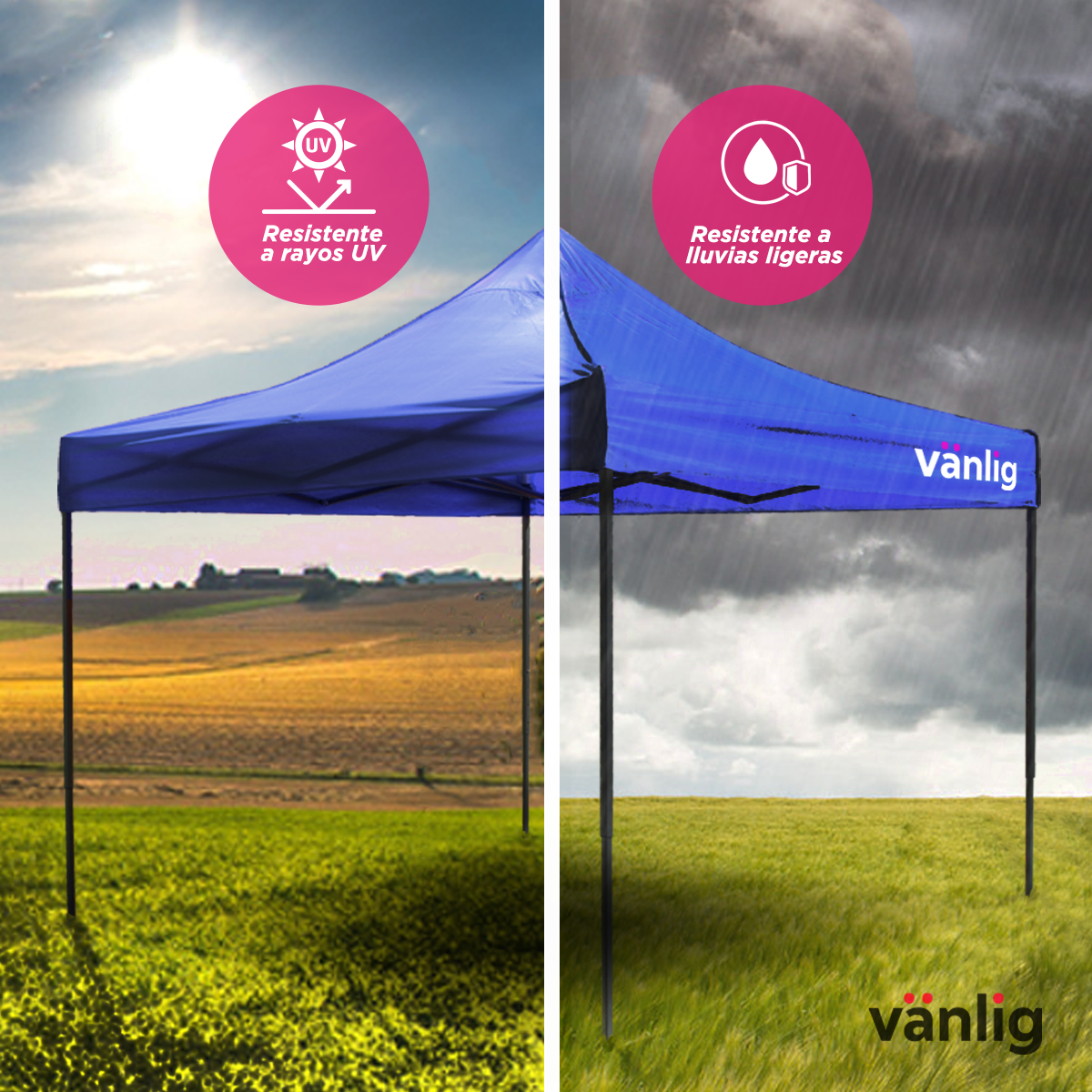 Fácil de transportar, montar y desmontar. Apertura manual. Innovador mecanismo de plegado le permite abrir y cerrar la carpa de en menos de un minuto.