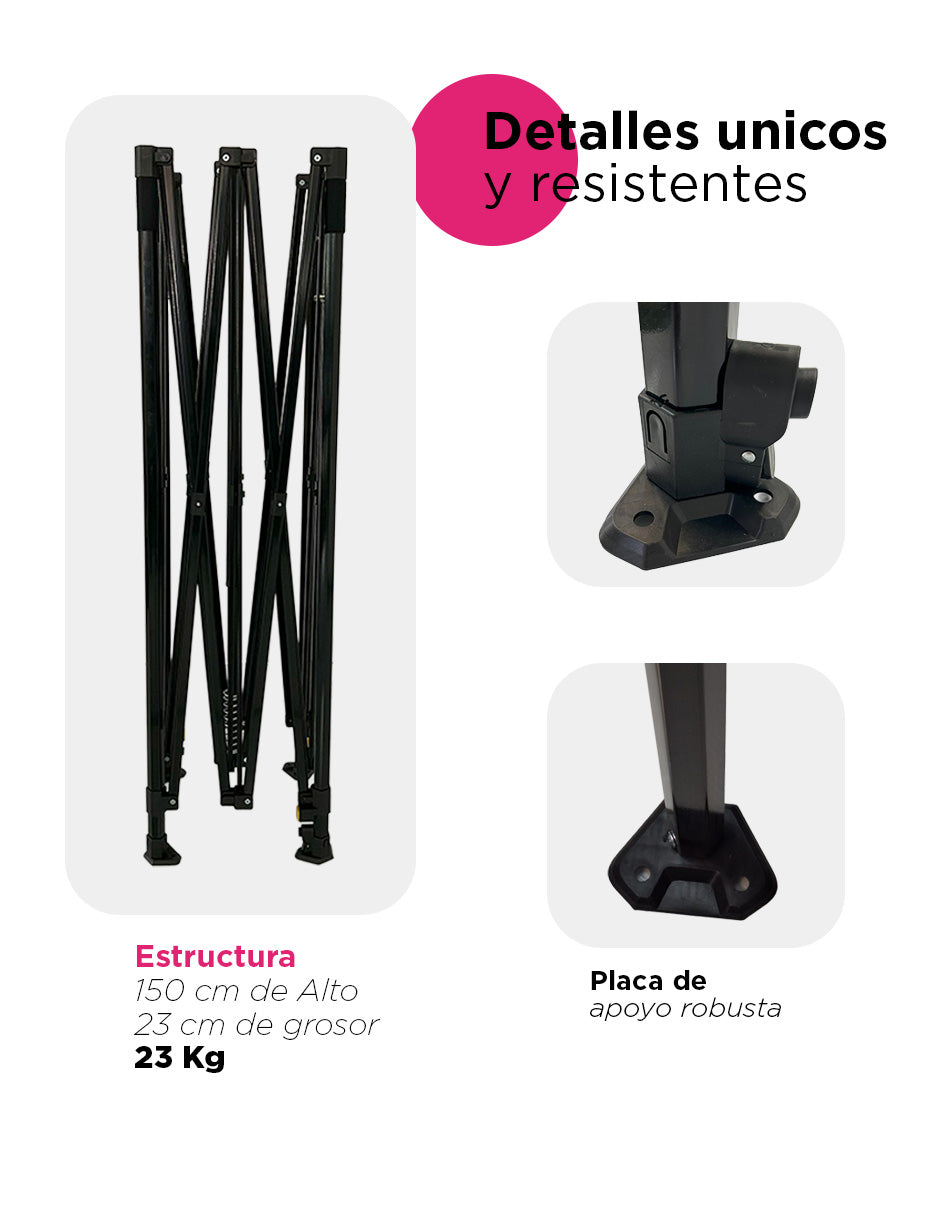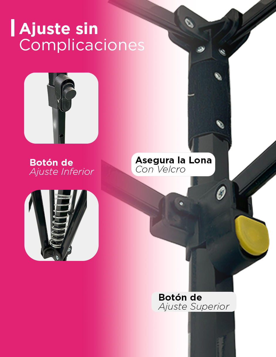 Perfecto para jardines, terrazas, reuniones familiares, picnics o eventos, este toldo combina funcionalidad y estilo para que disfrutes de la sombra y el confort en todo momento.
